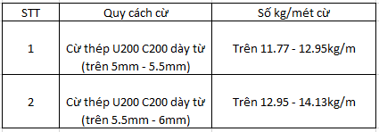 KT: 400x170x15,5 (Khối lượng riêng: 76,1kg/md) có các chiều dài 6m; 7m;....10md/thanh; 12md/cây; 16md/cây, 18md/cây.