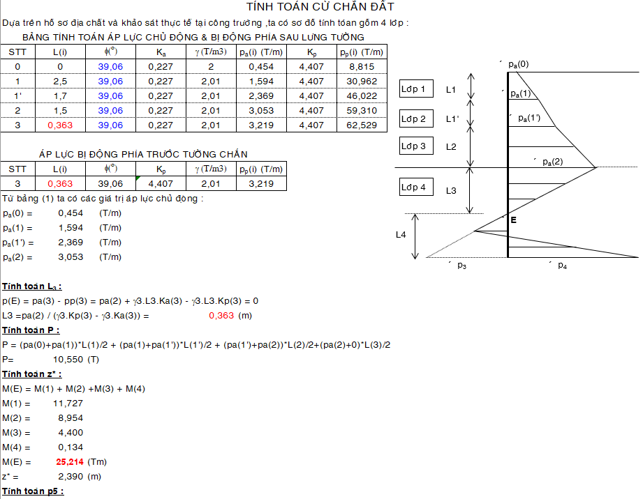 Cơ Giới và Xây Lắp Hùng Giang gửi tới các bạn file excel dùng để tính tường cừ Larsen trong thi công xây dựng.