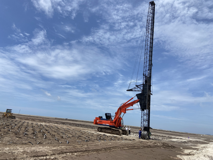 Bước 6: Sau khi hoàn thành việc cắm các bấc thấm, tiến hành công việc thi công lớp chống thoát nước từ mặt trên của các bấc thấm sử dụng nguyên liệu là cát kháng nước.